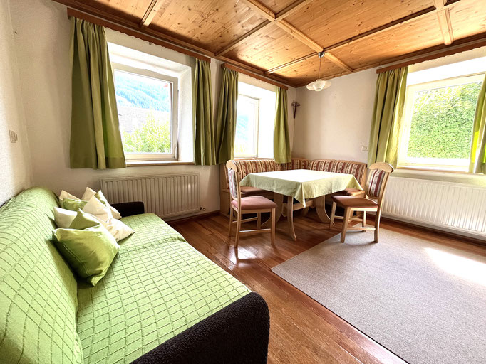The sitting/living room is equipped with a sitting area, a sofa masonry heater and SAT-TV.